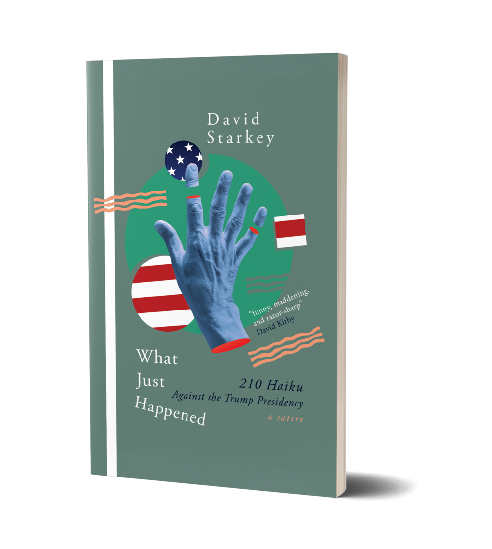 In What Just Happened: 210 Haiku Against the Trump Presidency (a Satire), David Starkey memorializes each week of Donald Trump’s four years in office with a single haiku. While the poems sizzle with dismay and disbelief, they are often tempered by dark comedy as Starkey catalogues Trump’s outrages in lines you won’t soon forget.
